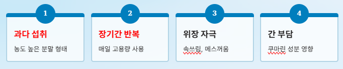 - 건강에 좋다는 이유로 장기간 매일 복용