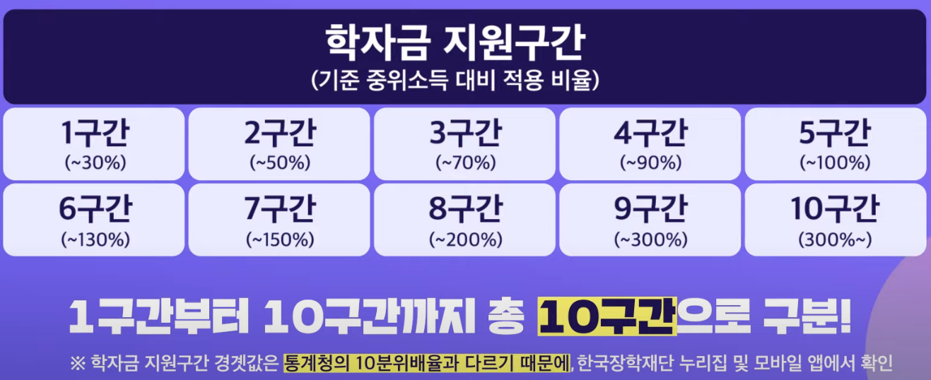 2. 국가장학금 지급일과 구간별 지원 금액 변화