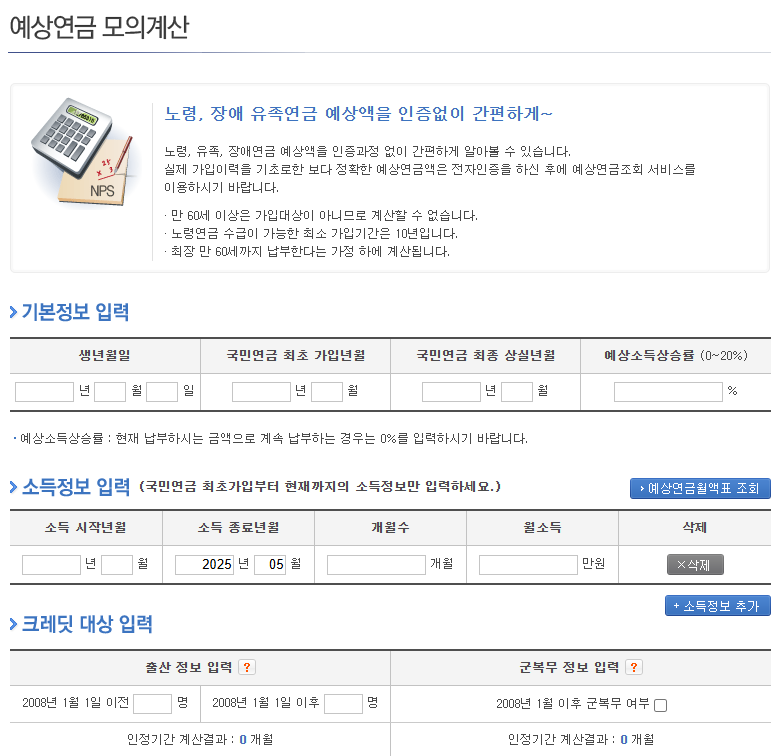- 공인인증서 로그인 없이도 예상 계산 가능