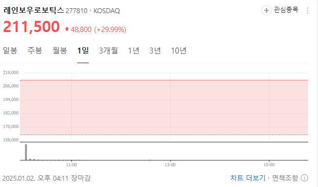 (1) 레인보우로보틱스: 개장 직후 29.69% 상승하며 상한가를 기록했습니다.