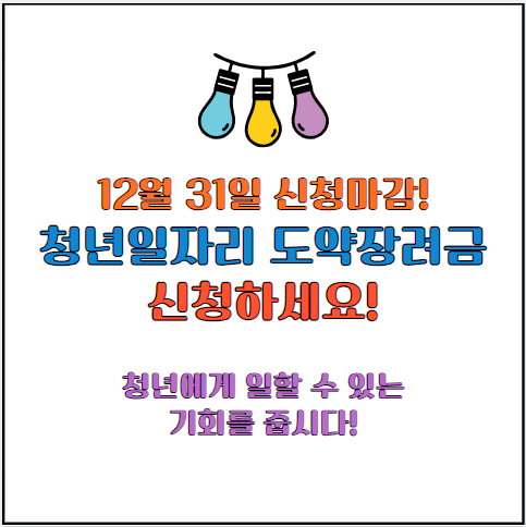청년일자리 도약장려금은 청년들에게 정규직 일자리를 제공하고, 기업들에게는 재정적 부담을 덜어주는 중요한 정책입니다. 이 프로그램을 통해 많은 청년들이 안정적인 직업을 찾을 수 있을 것입니다. 그러나 신청 기간이 12월 31일까지이므로, 청년과 기업들은 서둘러 신청을 마쳐야 합니다. 조건을 충족하는 기업과 청년들은 반드시 이번 기회를 놓치지 않도록 해야 합니다.