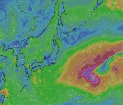 글로벌 기상 데이터를 바탕으로 실시간 바람, 강수, 기압, 구름 분포를 시각적으로 보여주는 사이트입니다. 화면을 한국 중심으로 설정하면 태풍의 이동 방향과 바람 세기를 직관적으로 파악할 수 있고, 시간대별 예측 슬라이더를 이용하면 앞으로 3일~7일간의 진행 경로도 확인할 수 있습니다. - 기상청 태풍정보