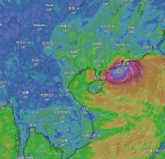 - 현재 위치: 홍콩 남남서쪽 약 100~130 km 해상
