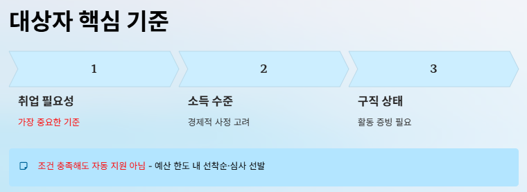취업과 자립이 필요한 계층이 우선 지원 대상입니다. - 공고 확인과 빠른 신청이 핵심