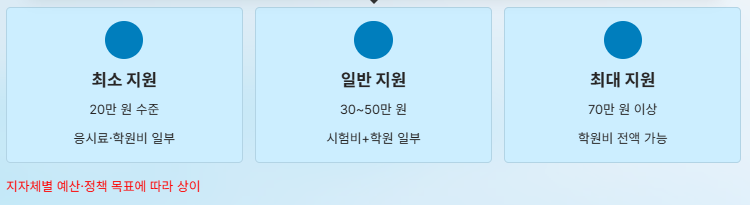 일부 지역은 더 높은 금액을 지원하기도 합니다. - 학원비·시험비 중심으로 비용 지원